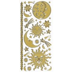 | | Gold Celestial Design StickersDazzles are beautiful on cards, scrapbook pages, candles, album covers, boxes, books and more. Simple to use, just pull one sticker off the backing and place on your desired paper. This Gold Celestial Designs Dazzles sheet has 37 pieces including moons, stars and a border. Be creative! Code: HOTP2026